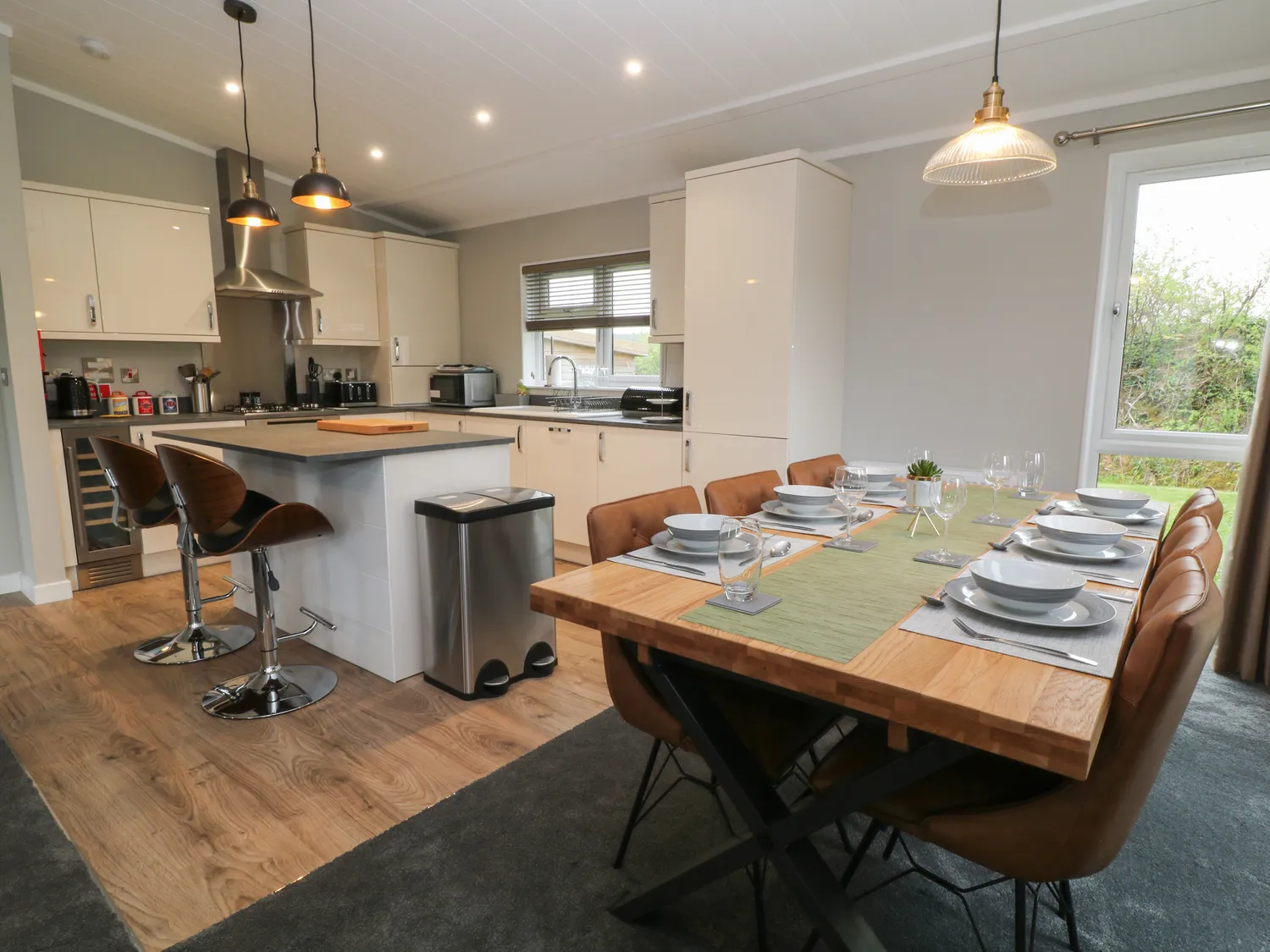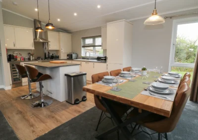 The lodge comfortably accommodates up to six people and features a private garden with hot tub, off-road parking, and easy access to the stunning surroundings of Roadford Lake. Inside, the bright and spacious open-plan living area has been thoughtfully designed for modern living, with a high-quality fitted kitchen, breakfast bar, dining table for six, and a comfortable lounge area centred around a Smart TV — perfect for relaxing or entertaining family and friends.